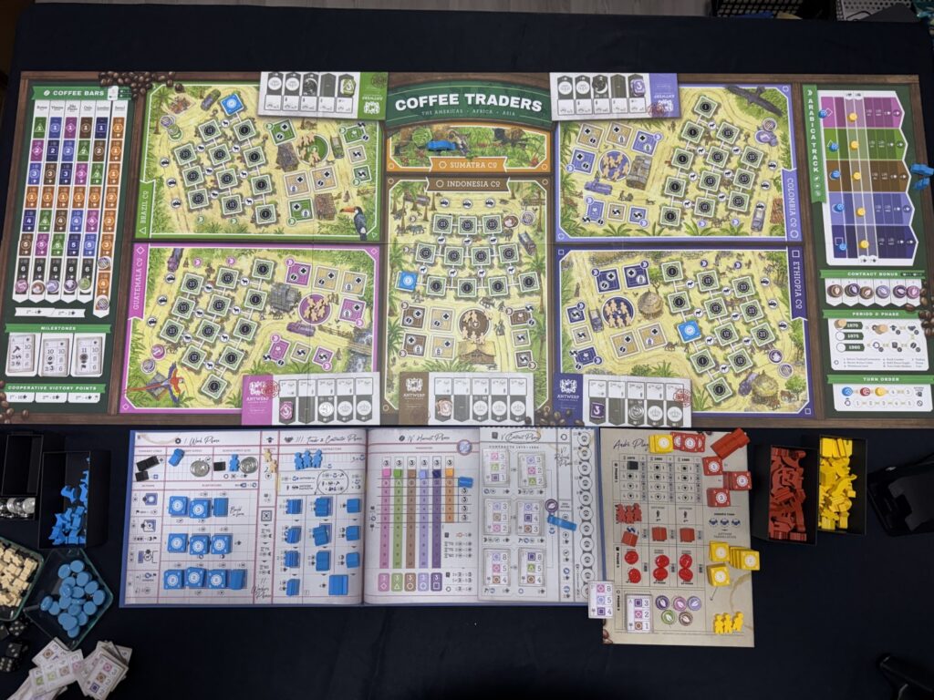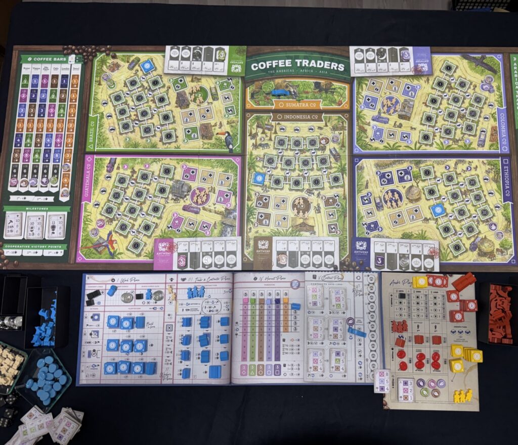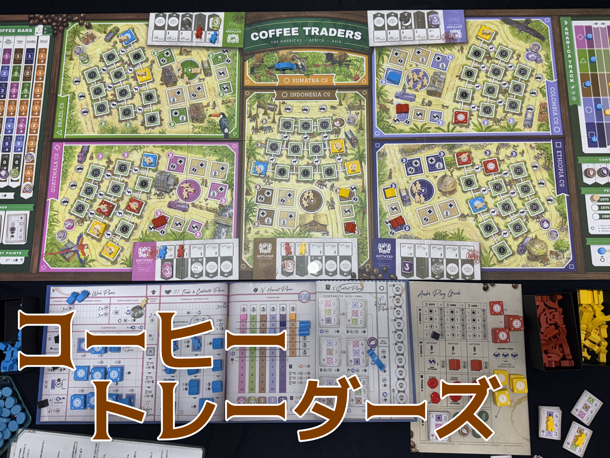 『コーヒートレーダーズ』は、世界のコーヒー市場を舞台にした2〜5人用の重量級の経済戦略ボードゲームです。