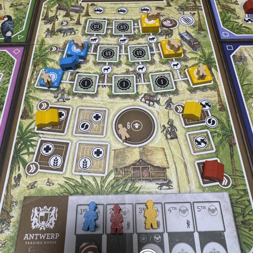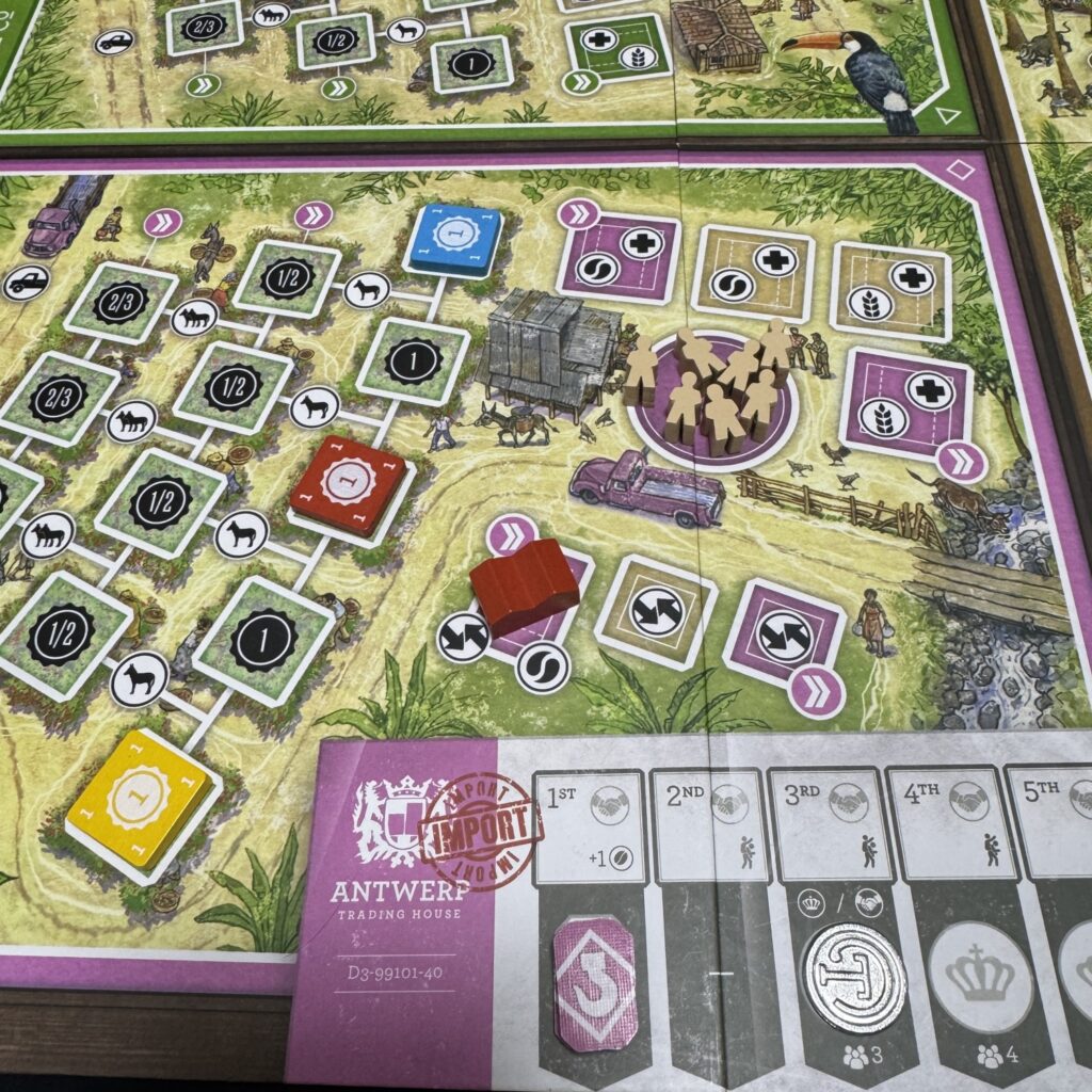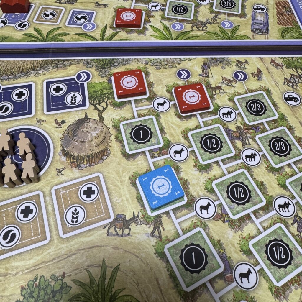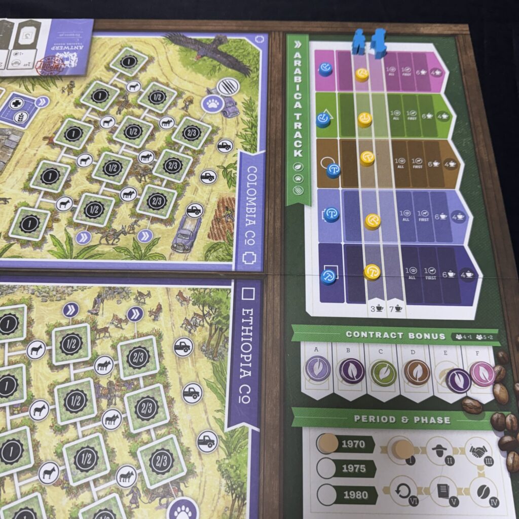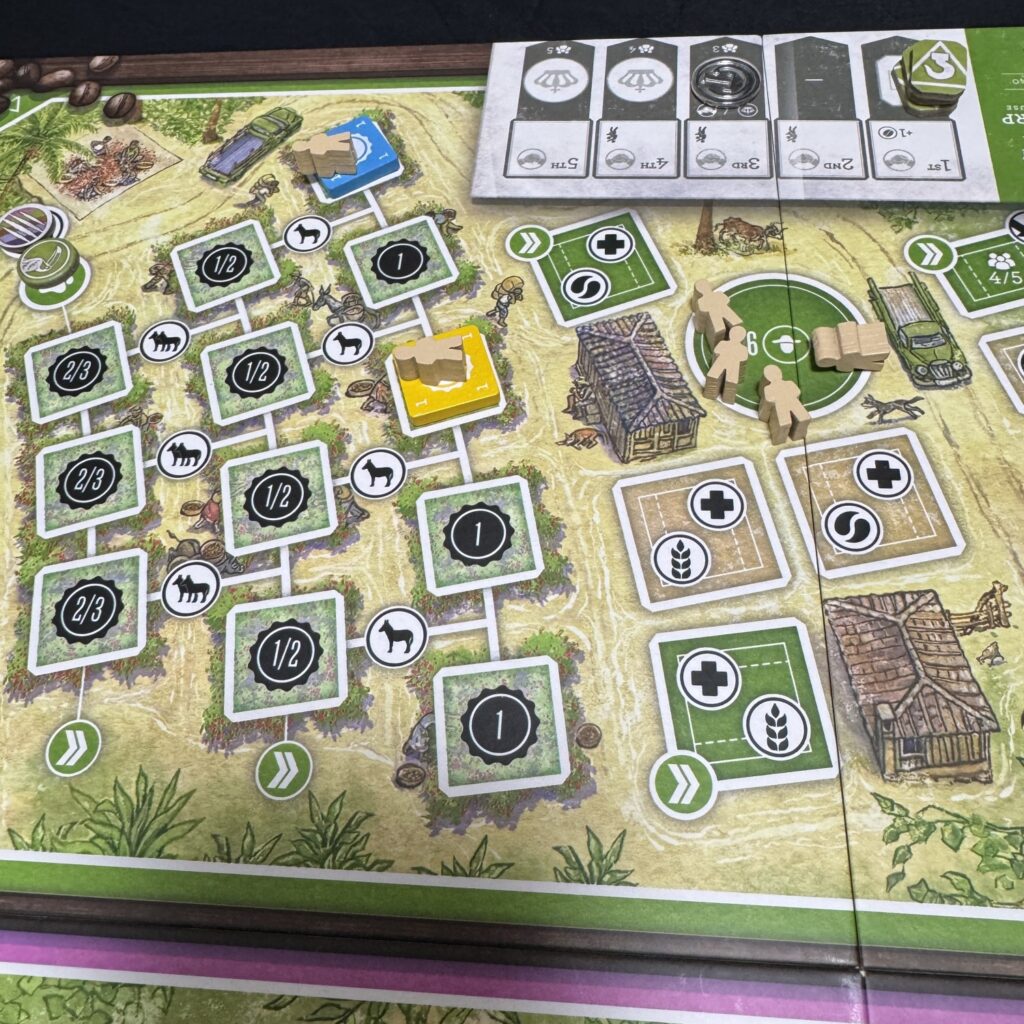 なお、フアンはアラビカトラックを後退させることはないため、フアンが4勝利点スペースに到達した場合にはプレイヤーはその協同組合の同スペースには入れなくなります。